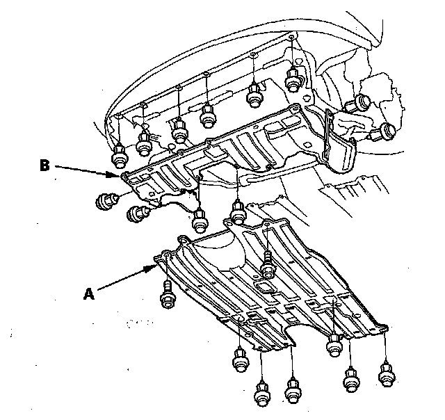 10. Connect the A/T oil pressure gauge set w/panel to the forward clutch pressure inspection port (B).