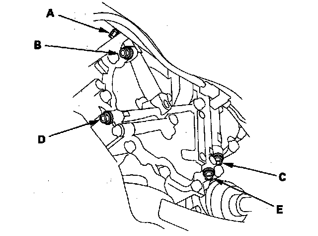 12. Connect the A/T high pressure gauge to the drive pulley pressure inspection port (D) and to the driven pulley pressure inspection port (E).