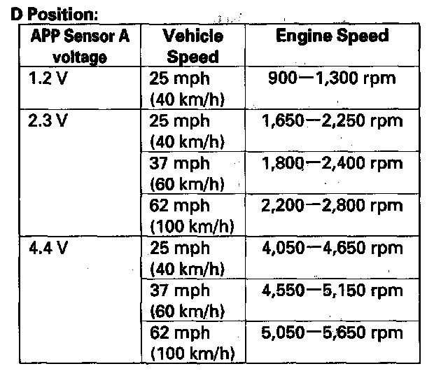 3. Start the engine, then shift the shift lever to D, while pressing the brake pedal. Press the accelerator pedal, and release it suddenly. The engine should not stall.