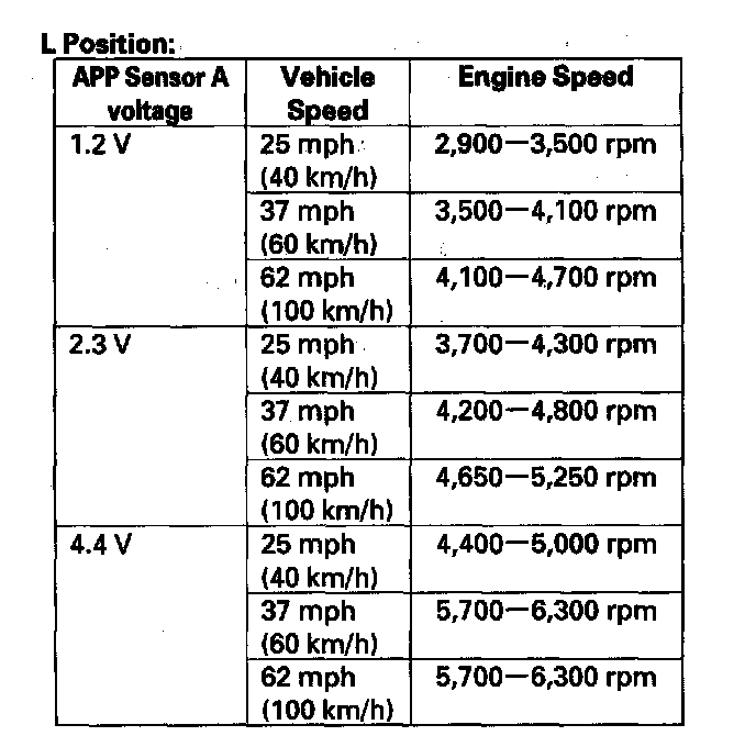 15. Review each snapshot individually, and compare APP Sensor A Voltage, Vehicle Speed, and Engine Speed to the following table.