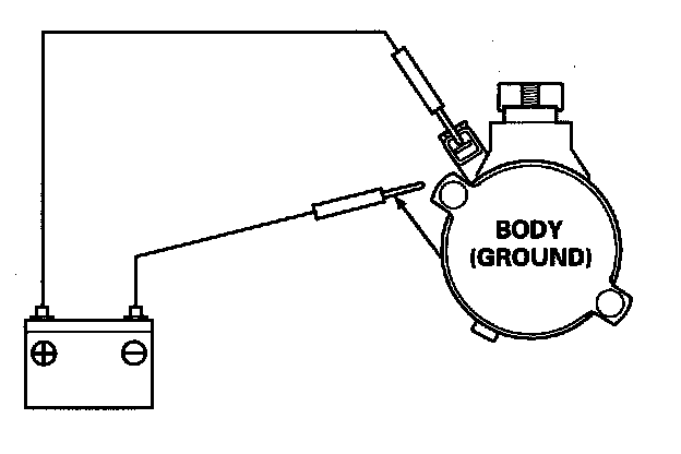3. Connect the battery as shown. If the starter pinion moves out, it is working properly.