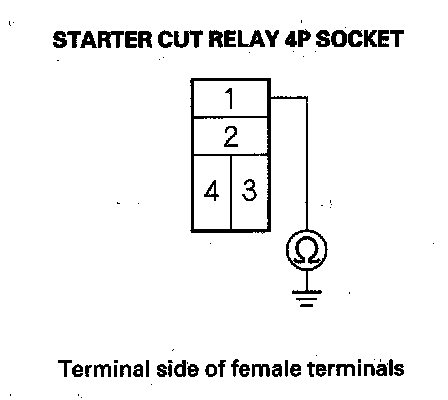 16. Check for continuity between starter cut relay 4P socket terminal No. 1 and body ground.
