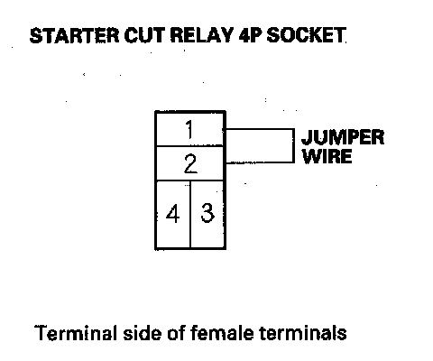 18. Connect the starter cut relay 4P socket terminals No. 1 and No. 2 with a jumper wire, and turn the ignition switch to START (III).