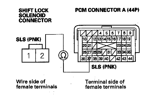 NO - Repair open in the wire between PCM connector terminal A27 and the shift lock solenoid connector.