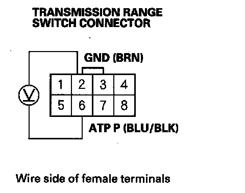 24. Measure the voltage between transmission range switch connector terminals No. 2 and No. 6.
