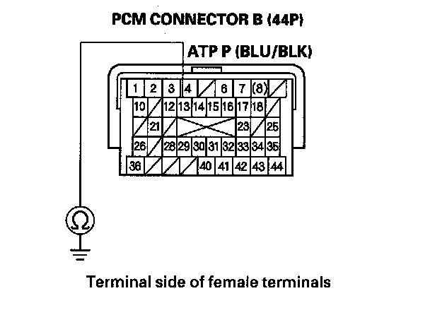 27. Check for continuity between PCM connector terminal B13 and body ground.