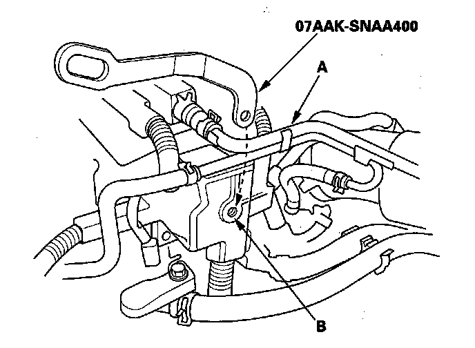 3. Install the 1.8 support eyelet (07AAK-SNAA400) behind the breather pipe (A) and down to the thread hole (B) on the cylinder head.