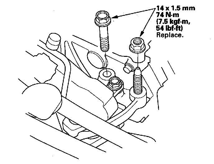 7. Tighten the new side engine mount bracket mounting bolt and nut.