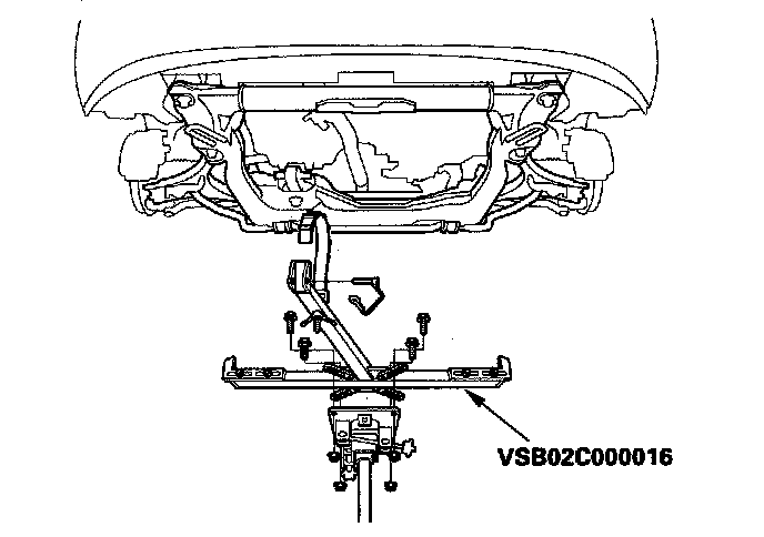 11. Using the front subframe adapter (VSB02C000016) and a jack, raise the front subframe up to body.