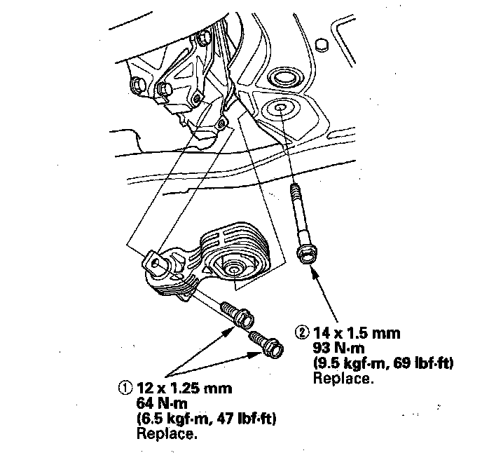 16. Install the lower torque rod, then tighten the new lower torque rod mounting bolts in the numbered sequence shown.