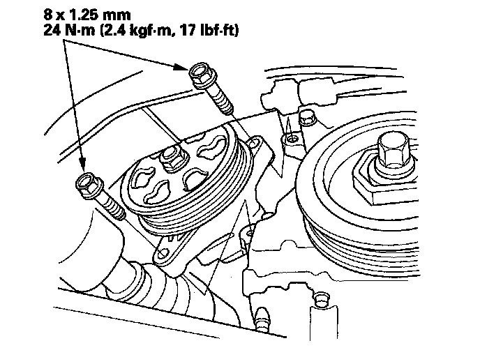 1. Install the accessory brackets and tighten their bolts to the specified torque.