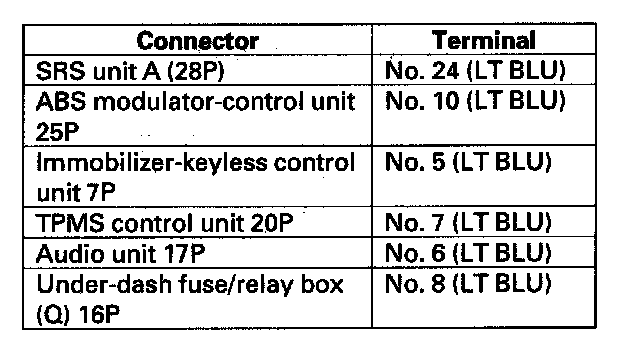 - TPMS control unit 20P connector (with TPMS)