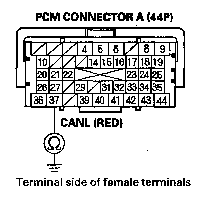 34. Check for continuity between PCM connector terminal A37 and body ground.