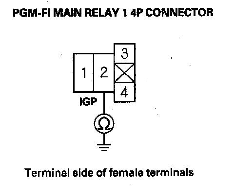 60. Measure voltage between PGM-FI main relay 1 4P connector terminal No. 3 and body ground.