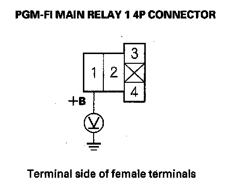 64. Measure voltage between PGM-FI main relay 1 4P connector terminal No. land body ground.