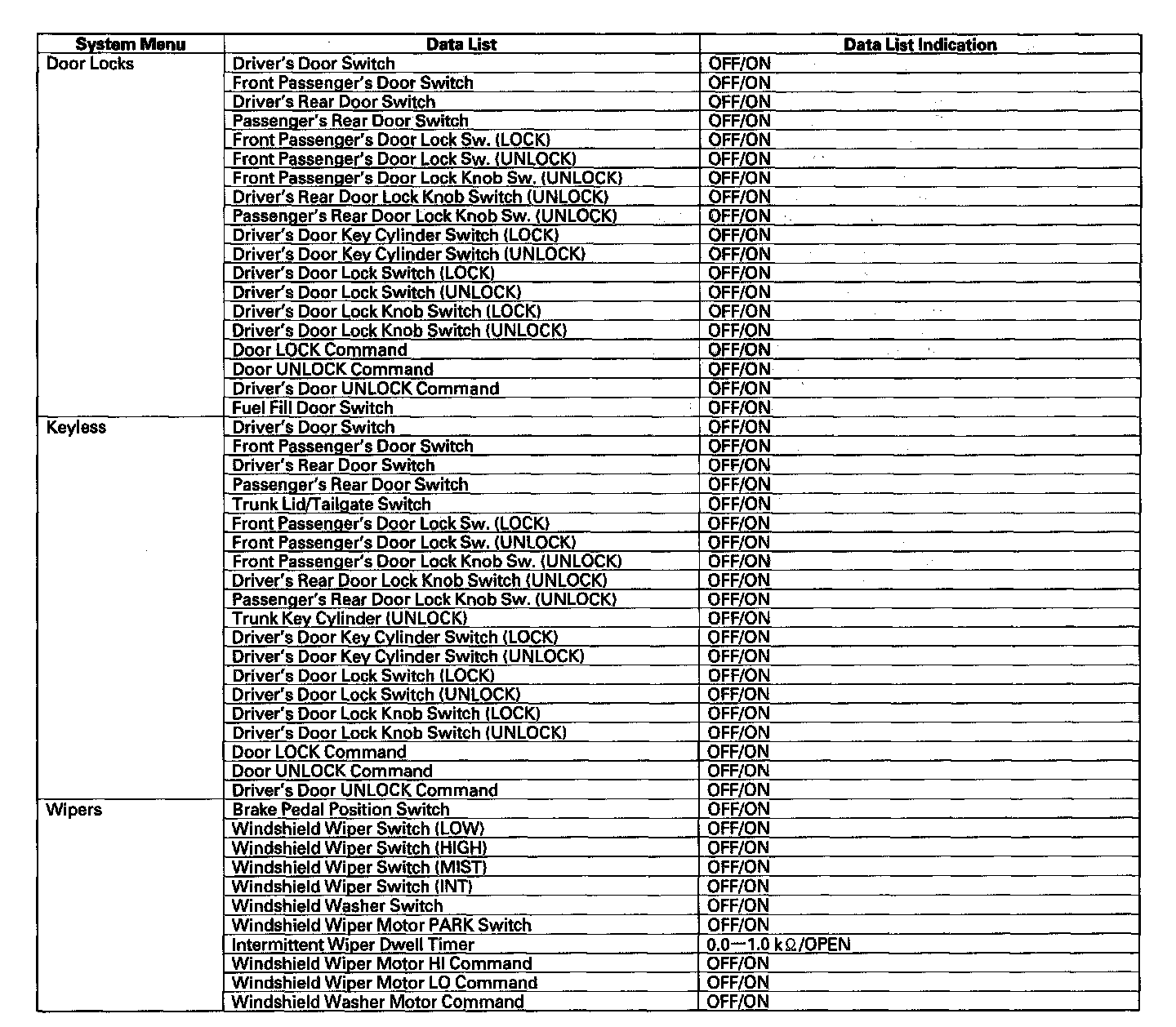 By connecting the HDS to the data link connector (DLC), the HDS can retrieve the diagnostic results from the MICU via a diagnostic line called K-LINE. The K-LINE is distinguished from the CAN line, and connected to the CAN related ECUs. The MICU is a gateway between the HDS and B-CAN related ECUs, and sends B-CAN diagnostic results to the HDS. When performing a function test with the HDS, the HDS sends an output signal through the K-LINE to the MICU. The MICU either relays the request to another ECU, or commands the function its self.