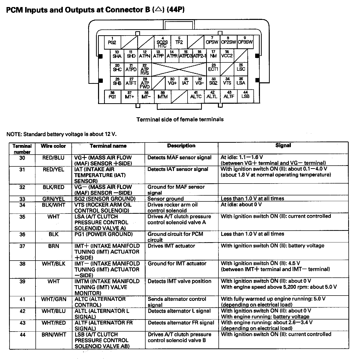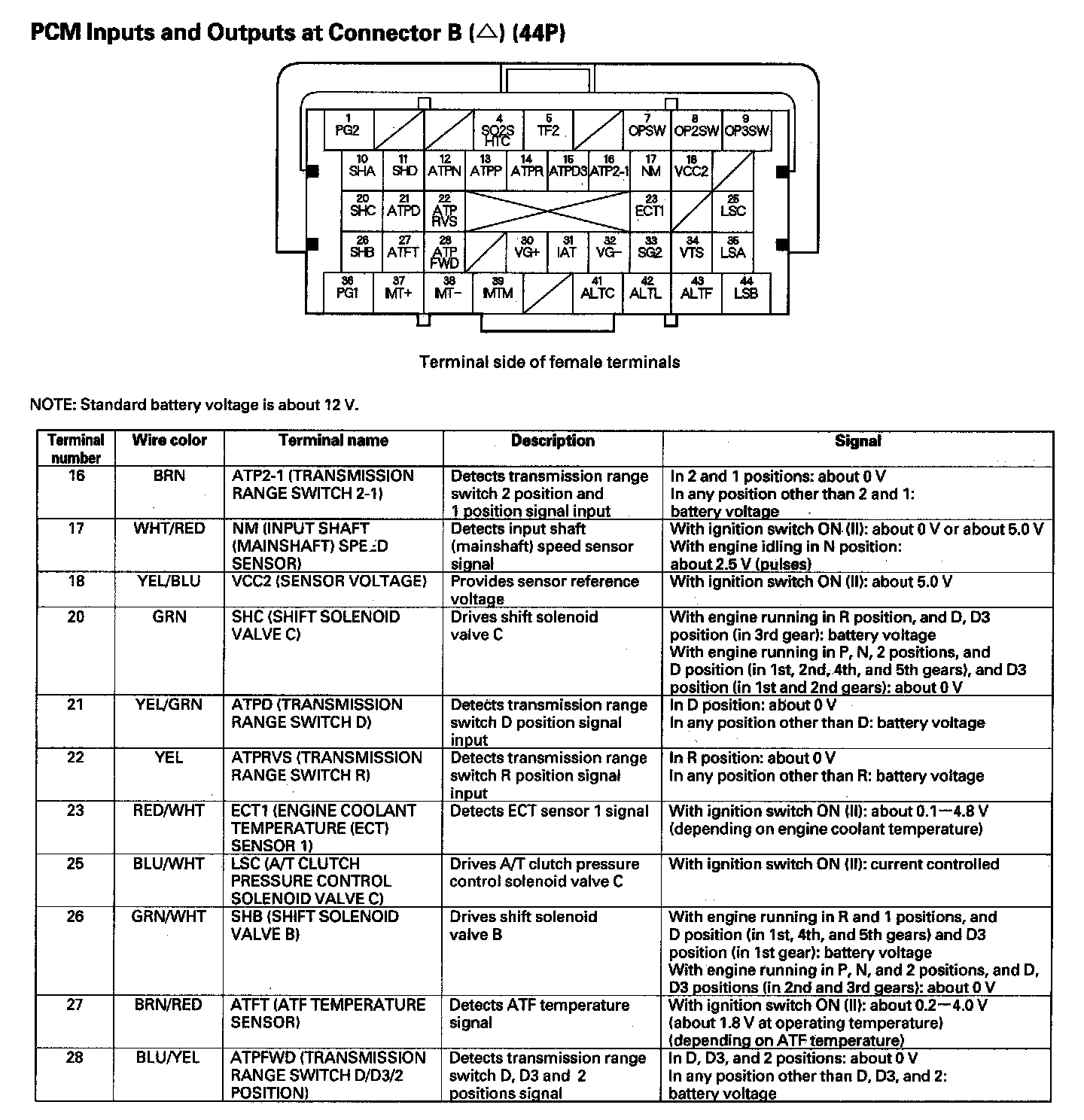 PCM Inputs And Outputs At Connector B (44P) (Part 2):