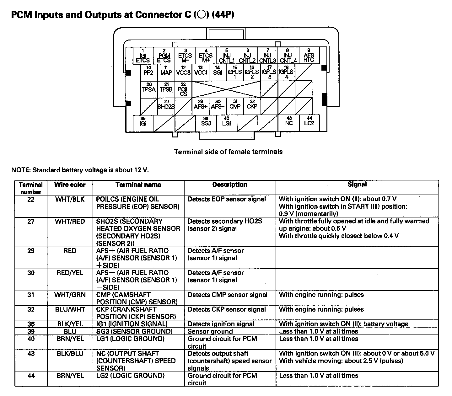 PCM Inputs And Outputs At Connector C (44P) (Part 1):