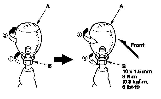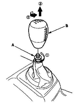 3. Si model: Loosen the locknut (A), then remove the shift knob (B).