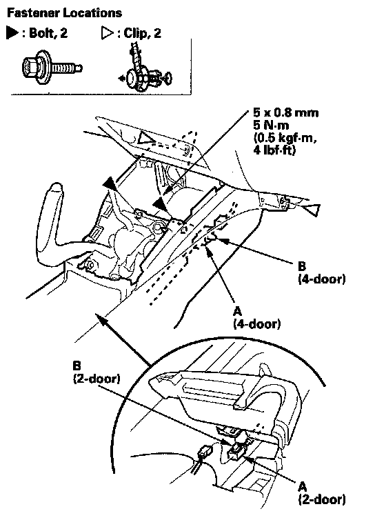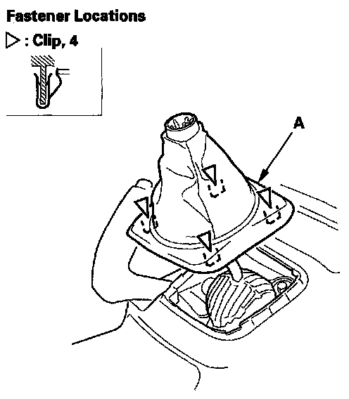4. Standard M/T model: Detach the clips by pulling the front inner panel (A) up.