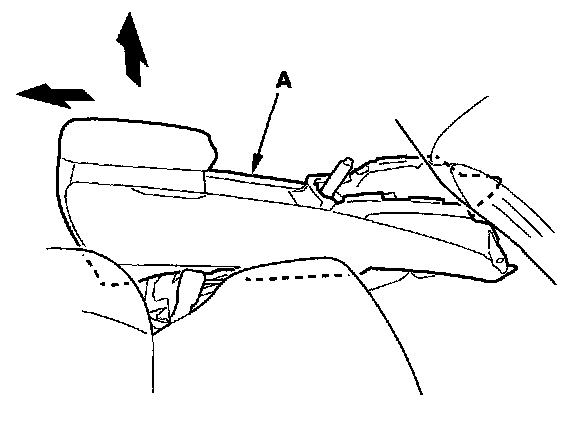 12. Lift up the rear of the console (A), and remove it from the dashboard.