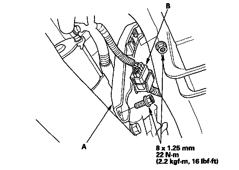 3. Install the intake manifold bracket (A), then install the connector (B).
