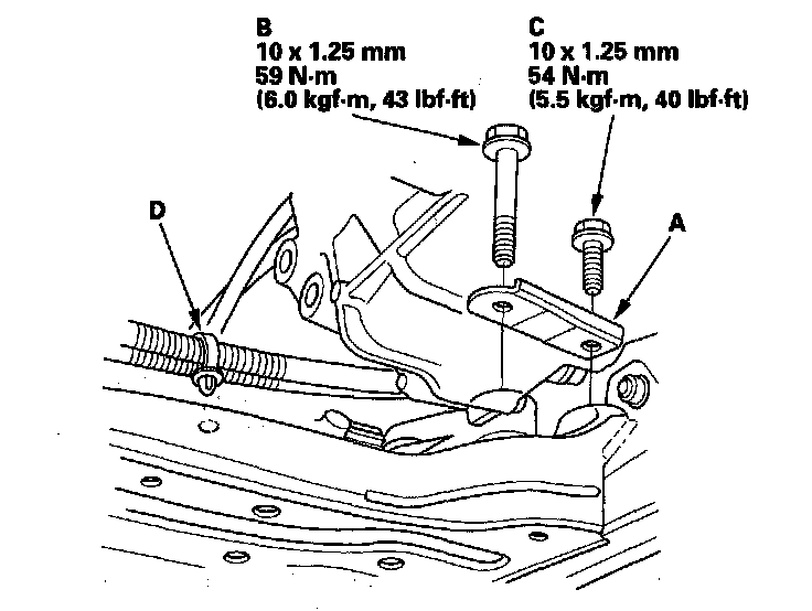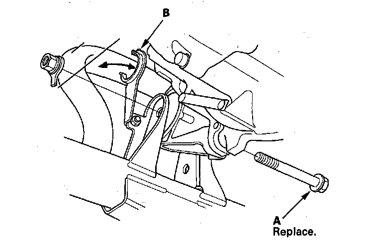 7. Tighten the new transmission mounting bolt and nuts.