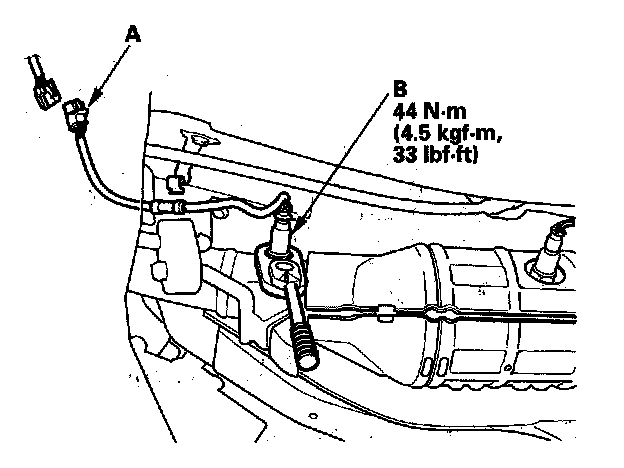1. Disconnect the A/F sensor 4P connector (A), then remove the A/F sensor (B).