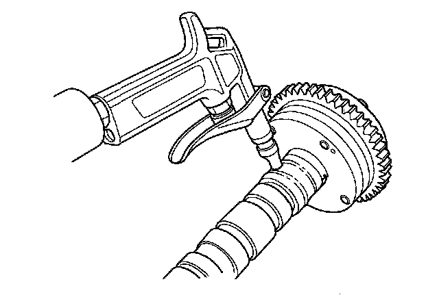 14. Hold the camshaft, and turn the VTC actuator clockwise until you hear it click. Make sure to lock the VTC actuator by turning it.