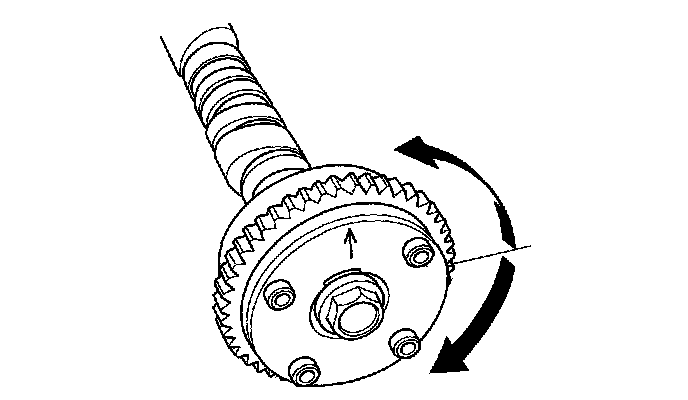 5. Check that the variable valve timing control (VTC) actuator is locked by turning the VTC actuator clockwise and counterclockwise. If the VTC actuator is not locked, replace the VTC actuator.