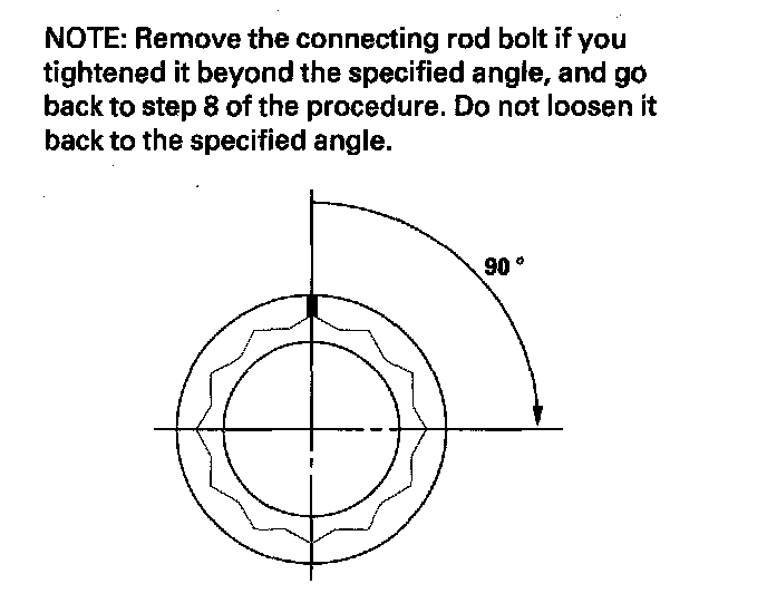 Tighten 49 Nm (5.0 kgf-m, 36 lbf-ft) + 90°