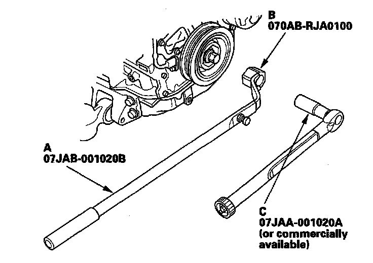 Torque the flywheel mounting bolts (B) in a crisscross pattern in several steps.