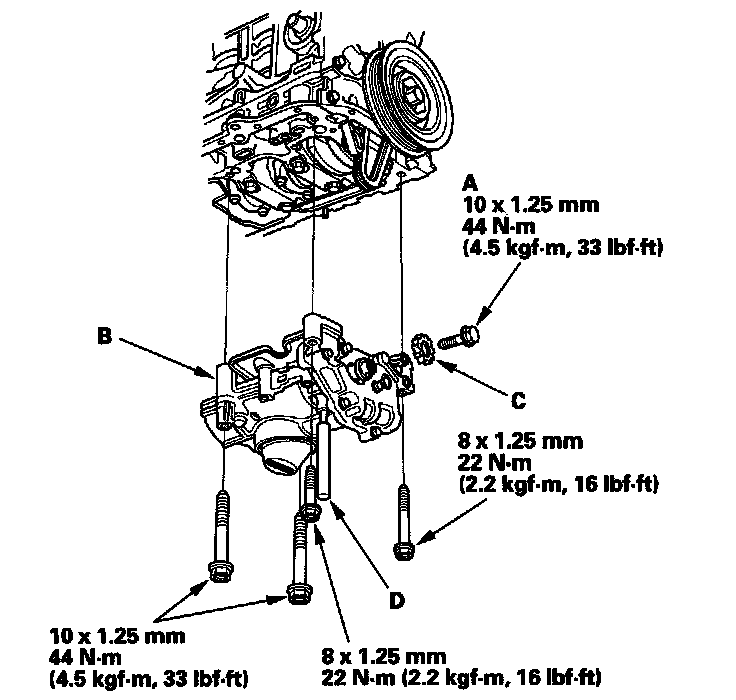 Torque the 8mm bolts in sequence to 22 Nm (2.2 kgf-m, 16 lbf-ft)