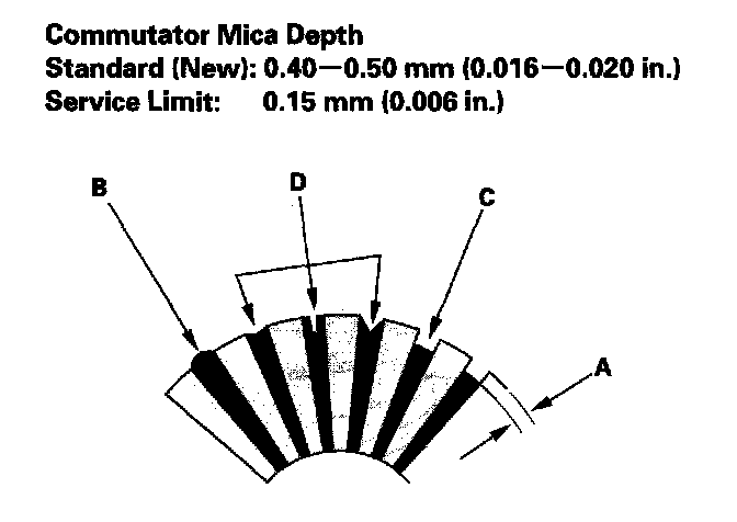 - If the commutator runout is within the service limit, check the commutator for carbon dust or brass chips between the segments.