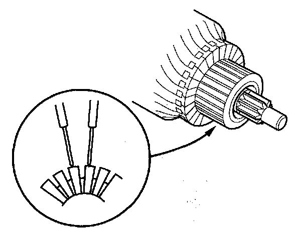 8. Check for continuity between the segments of the commutator. If there is open circuit between any of the segments, replace the armature.