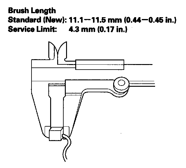 11. Measure the brush length. If it is shorter than the service limit, replace the brush holder assembly.