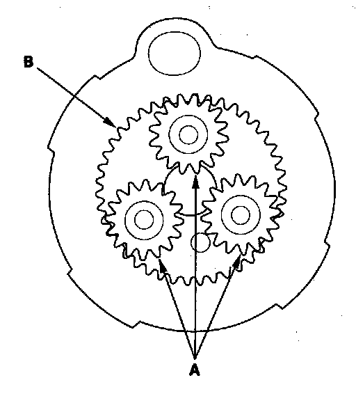 13. Check the planetary gears (A) and internal ring gear (B). Replace them if they are worn or damaged.