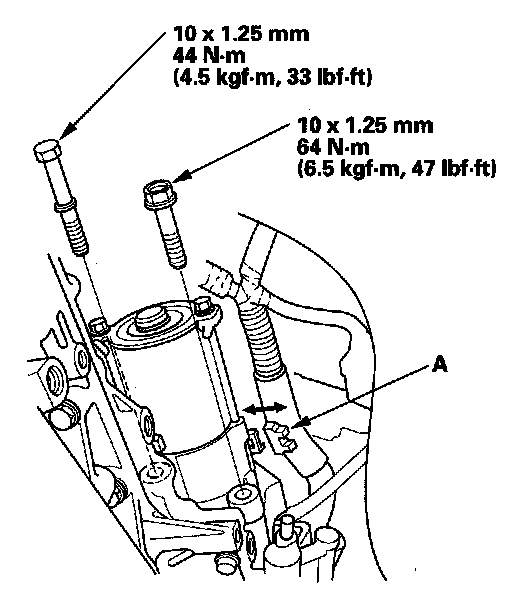 3. Install the starter, and tighten the bolts then install the harness clamp (A).