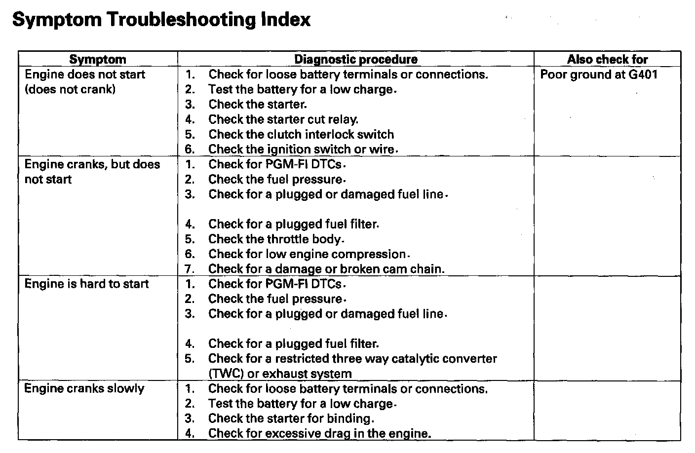 Symptom Troubleshooting Index: