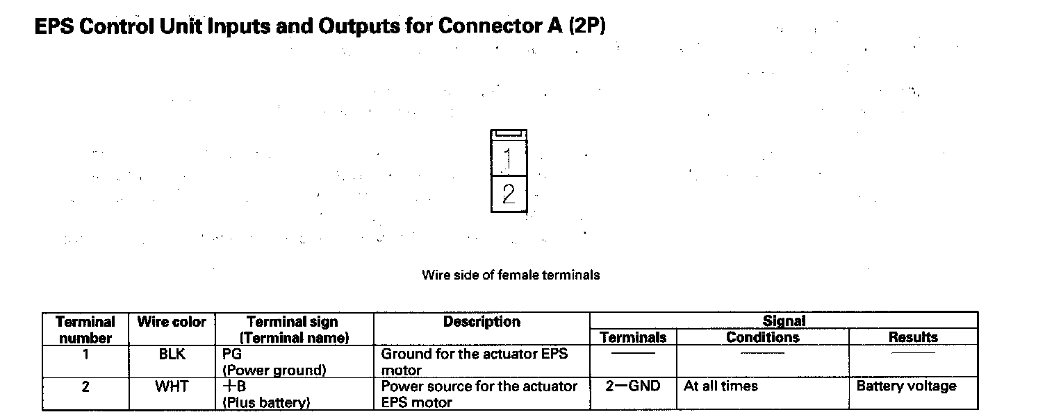 System DescriptionEPS Control Unit Inputs and Outputs for Connector A (2P):
