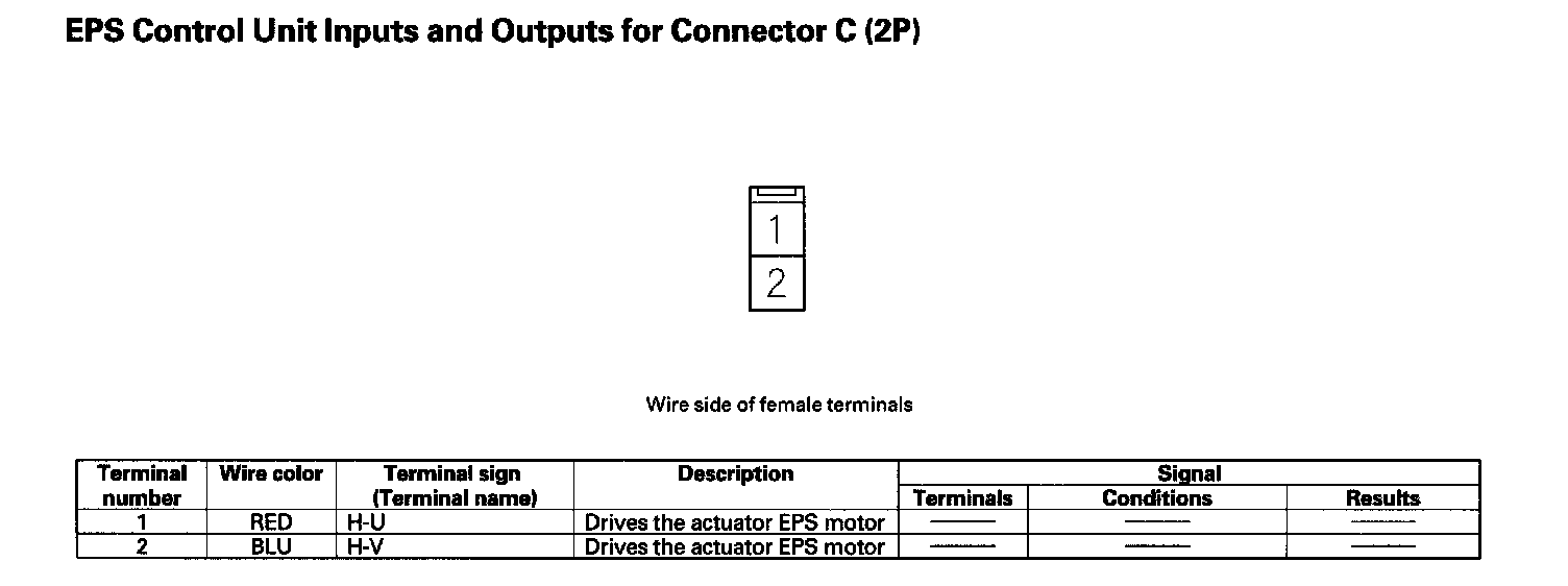 EPS Control Unit Inputs and Outputs for Connector C (2P):