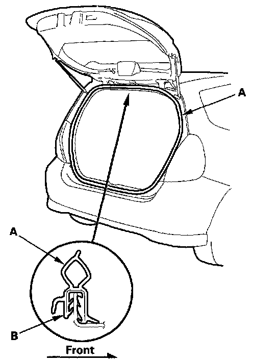 Tailgate Weatherstrip Replacement1. Remove the tailgate weatherstrip (A) by pulling out on it,
