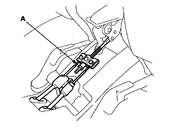 3. Loosen the parking brake cable adjusting nut (A).