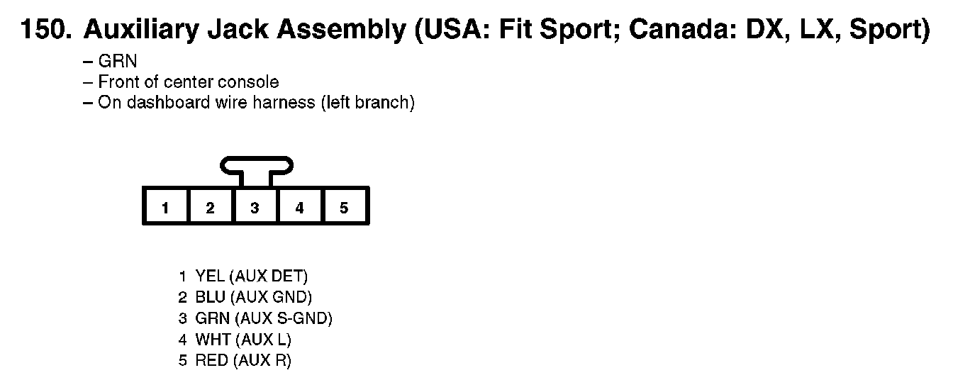 150. Auxiliary Jack Assembly (USA: Fit Sport; Canada: DX, LX, Sport):