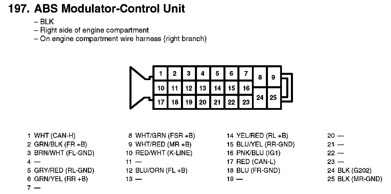 ABS Modulator-Control Unit Inputs And Outputs For 25P Connector (Part 1):