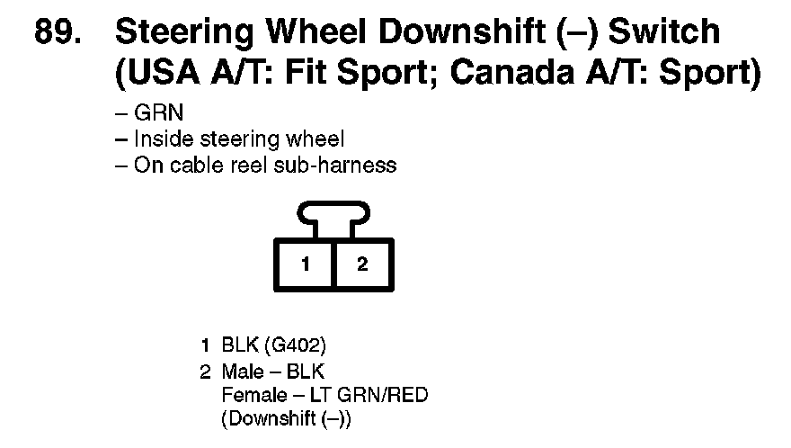 89. Steering Wheel Downshift (-) Switch (USA A/T: Fit Sport; Canada A/T: Sport):