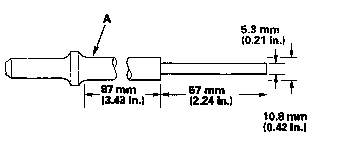 2. As illustrated below, use a commercially available air impact valve guide driver (A) modified to fit the diameter of the valve guides. In most cases, the same procedure can be done using the valve guide driver and a conventional hammer.