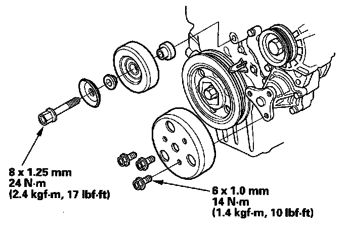 4. Install the water pump pulley and idler pulley.