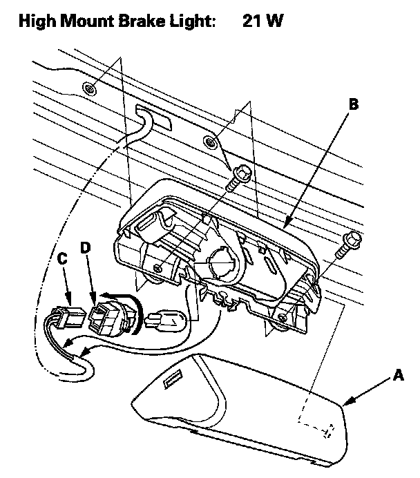 2. Disconnect the 2P connector (C) from the bulb socket (D).