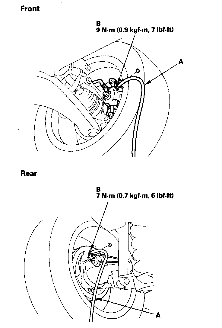 4. Attach a length of clear drain tube (A) to the bleed screw (B), then, loosen the bleed screw to allow air to escape from the system. Then tighten the bleed screw securely.